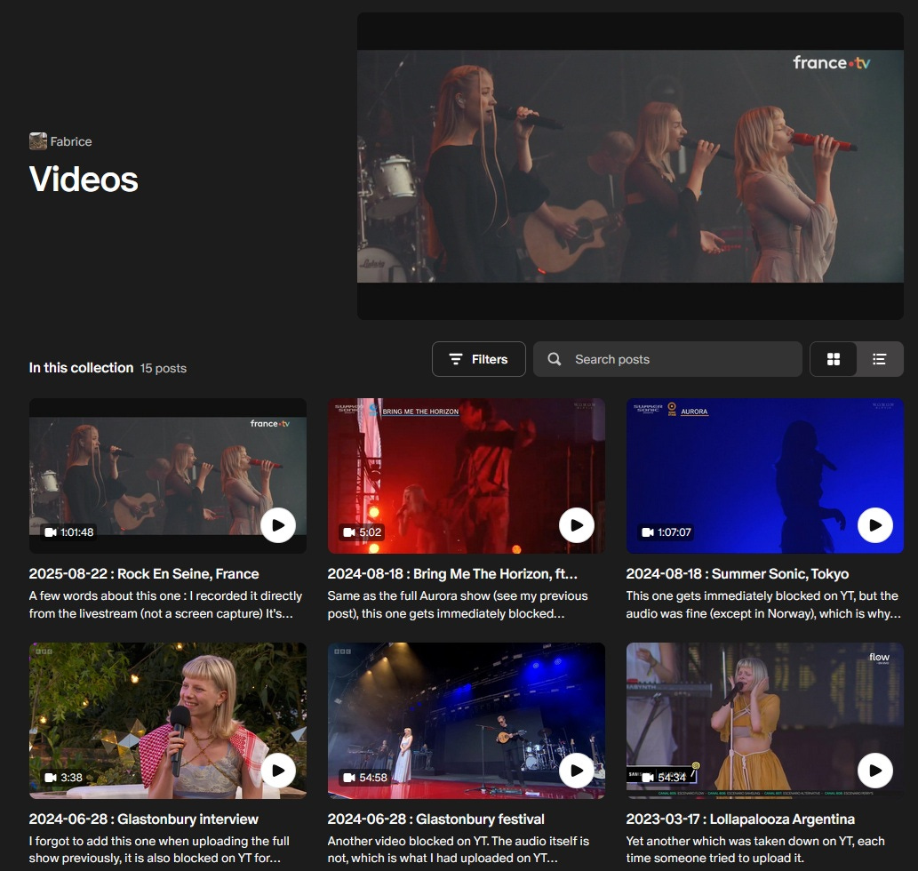 At the moment, there are 15 videos (partial screenshot):